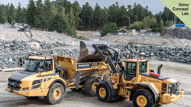 Volvo Construction Equipment demonstrerade en prototyp av en självgående hjullastare och ramstyrd dumper som arbetar tillsammans på företagets Xploration Forum i Eskilstuna.