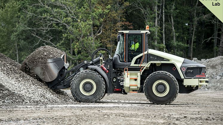 Högarna med material på anläggningen sorteras av LX1, Volvo CE:s elhybridbaserade koncepthjullastare. Maskinen kan ge upp till 50 % högre bränsleeffektivitet, men även betydligt lägre utsläpps- och bullernivåer jämfört med dess traditionella motsvarigheter.