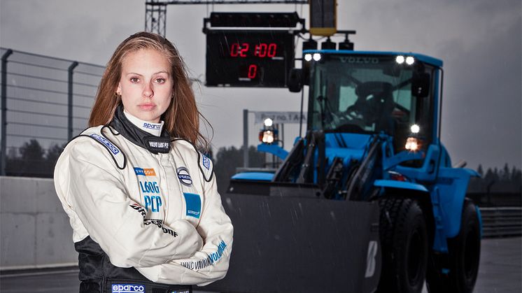 Hon var ”pojkflickan” som lekte med traktor och byggde vägar i sandlådan. Som följde med pappa, som körde kranbil, till jobbet. Och som vuxen blev en mycket duktig maskinförare bakom ratten till en Volvo L220E hjullastare hos Bröderna Hall i Hässleholm. Klart att Karin Olsson var ett sällsynt bra val att köra Swecons rekordlastare och sätta hastighetsrekord på Anderstorp med 103 km/tim.