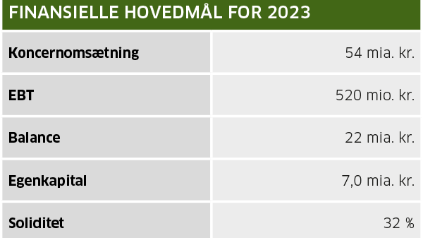”2023 kan inte samma medvind på marknaderna som 2022 förväntas och de många stundande osäkerheterna kommer att sätta sina spår i Danish Agro-koncernens finansiella mål för 2023. Vi budgeterar alltså för ett koncernresultat före skatt, EBT , på 520 miljoner danska kronor. DKK, vilket är betydligt lägre än resultatet 2022, säger Henning Haahr.