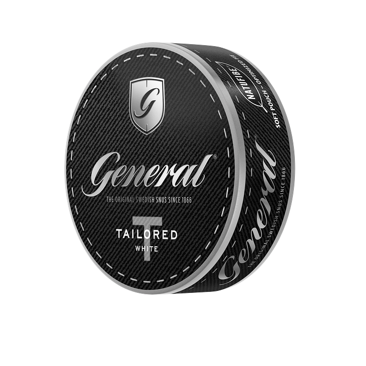 General Tailored är en skräddarsydd snusprodukt med mjukare prillor och optimerad passform under läppen. Snuset är förpackat i en diskret och smidig dosa.