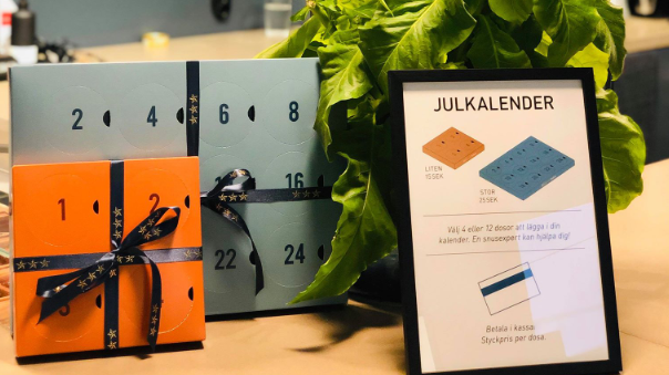 - I våra egna snusbutiker finns hela Swedish Match skandinaviska sortiment av snusprodukter, liksom produkter från Gotlandssnus samt vår tobaksfria nikotinprodukt ZYN. Vi tyckte att det var trevligt att ta fram en julkalender för våra snuskonsumenter, vi har också valt att låta konsumenterna själva få komponera innehållet, säger Eleni Tjernberg, butikschef på Swedish Match.
