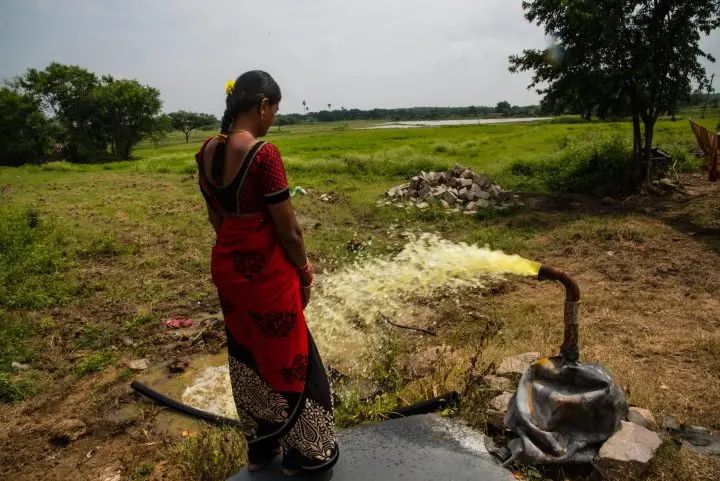 Contaminated ground water from a borewell in Gaddapotharam, India. Villagers have stopped using this water for agricultural irrigation due to dangerous levels of hexavalent chromium.