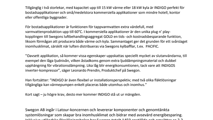 INDIGO – Den nya tuffa värmepumpen från Swegon