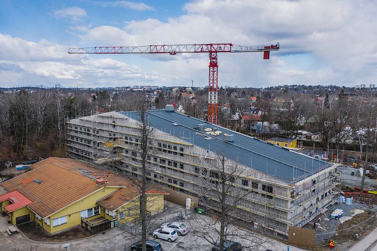 Skolan byggdes 2022 och har vindskyddet Windstopper Extreme som är en MINERIT-skiva från Swisspearl titigare hette den Cembrit. Byggentreprenör: Byggmästarna i Nyköping AB