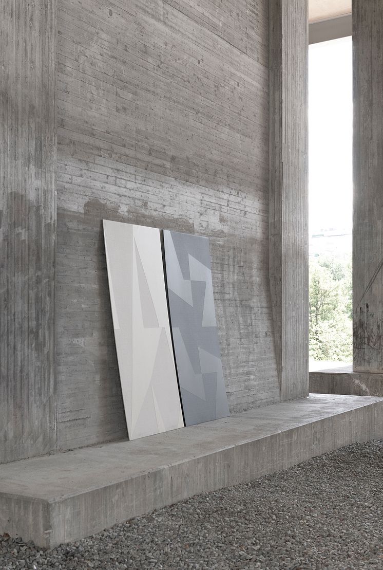 Cembrit Patina Singature i EgnellAllard designserie, mönstren är blästrade i de genomfärgade skivorna. Mönstret till vänster heter ABSTRACT och skivan heter Cembrit Patina Signature färg P545. Mönstret till höger heter Zig Zag och är på samma skiva i färg P070