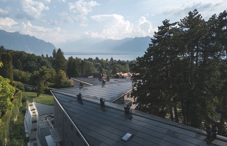 Eftersom solceller monteras i samma system som takskivorna från Swisspearl kan takets form designas fritt utan att ge avkall på gestaltningens estetik.