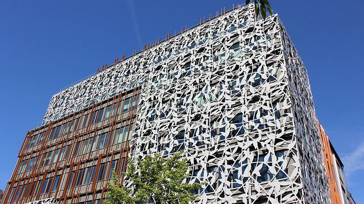 I mars flyttade den första hyresgästen in i 10-våningshuset Magnentus Tower. Här ryms kontor för ett par hundra personer och byggnaden är något av ett landmärke i Norrköping. Bakom den spännande och unika fasadlösningen med bladmönster och bakomliggande fond i fibercement står ÅWL Arkitekter.