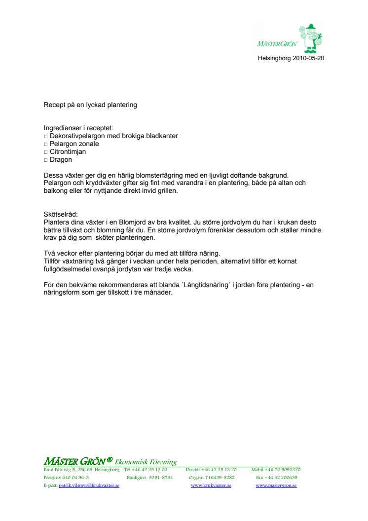 Vi ger dig förslag på innehållet och skötseln på en vacker plantering. Planteringarna ger dig inspiration och råd för att du skall få en vacker kompostion med växter till din entré, altan, balkong eller trappa upp mot huset. Inför de olika utplanteringssäsongerna kommer vi med flera värdefulla uppslag och planteringstips.