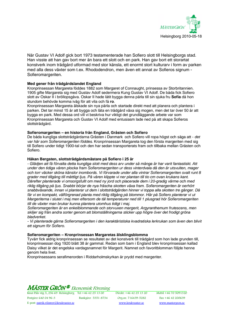Sofieromargeriten med dess kungliga historia kommer att försköna bröllopet mellan Kronprinsessan Victoria och Daniel Westling. Det var Kronprinsessan Margareta, vår nuvarande kungs farmor som som uppmärksammat och vårdat denna vackra och storblommiga Margerit under sin tid på Sofiero slott.