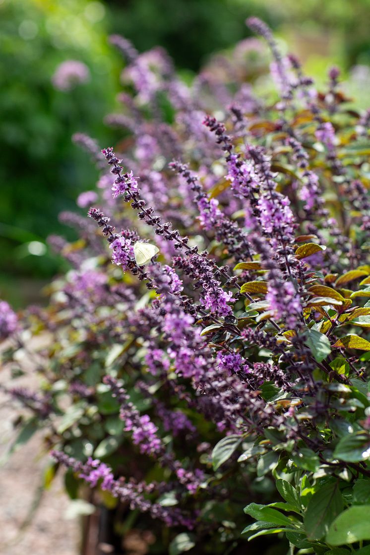Blomsterbasilika producerar rikligt med nektar som lockar mängder av insekter. På en vuxen planta hörs ofta ett konstant surr från dussintals bin och fjärilar som samsas om föda.