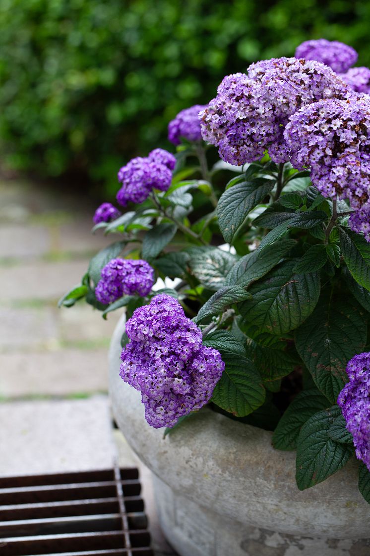 Det finns inte många växter i världen som kan mäta sig med en sådan mustig, mörkt blåviolett färg. Den fina och uppskattade färgen gör Heliotrop ganska unik bland sommarens utplanteringsväxter.