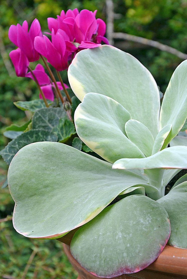 En ny favorit i höstkrukan - en Doftkalankoe! De friskt gröna och tjocka bladen ger ett svalt och rent intryck. Här passar det fint i krukan tillsamans med en färgstark Cyklamen. Räknar med att dessa växter håller sig fina i krukan långt in på hösten. Några enklare nattfroster skall inte behöva påverka varken blommor eller blad.