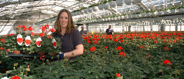 AB K E Petterssons handelsträdgård är ett familjeföretag som i dag drivs i fjärde generationen. Företagets historia som handelsträdgård är lång med start redan i början av förra seklet varför vi under 2014 kommer att fira hundraårsjubileum. Det är systrarna Jeanette och Catrin som äger företaget. Tillsammans med 20-talet anställda produceras årligen över 3 miljoner kruk- och utplanteringsväxter.