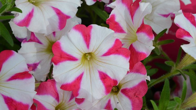 Som på alla petunior är bladen förhållandevis små och doftar kryddigt vid beröring.
