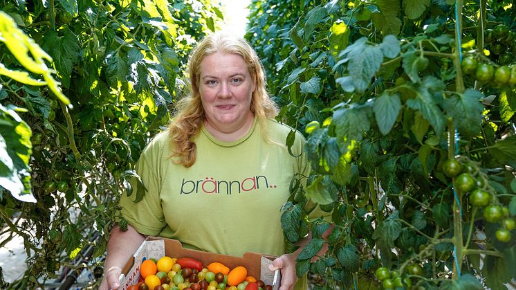 -I våras när vi bytte till att värma upp växthusen med pellets istället för, som tidigare, naturgas så kändes det naturligt att ta hela steget och bli Klimatcertifierade. Det är en självklarhet att vi tänker klimatsmart och vill ha en mer hållbar odling, säger Caroline Andersson som driver Brännan Trädgård.