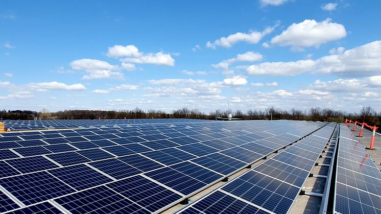 Denna veckan blev SydGrönts nya solcellsanläggning med 900 solpaneler klar på företagets lagertak på Långeberga i Helsingborg. SydGrönt kommer att använda all elproduktion som solcellsanläggningen producerar till den egna lagerverksamheten och anläggningen kommer att producera mer än 15% av energibehovet på årsbasis.