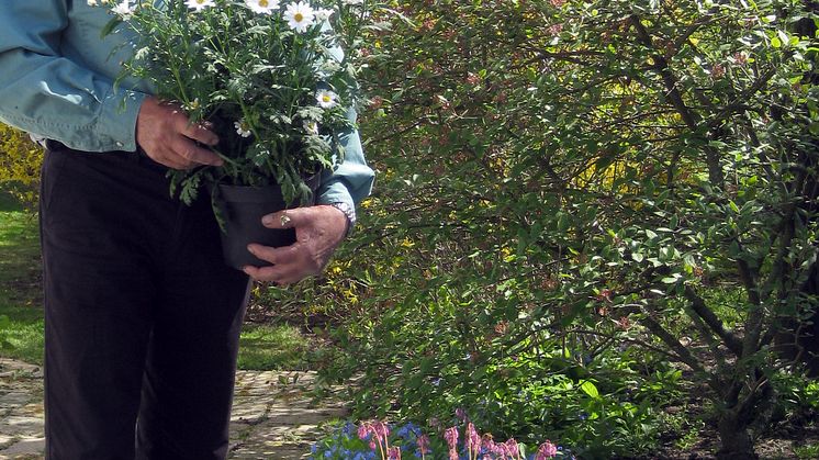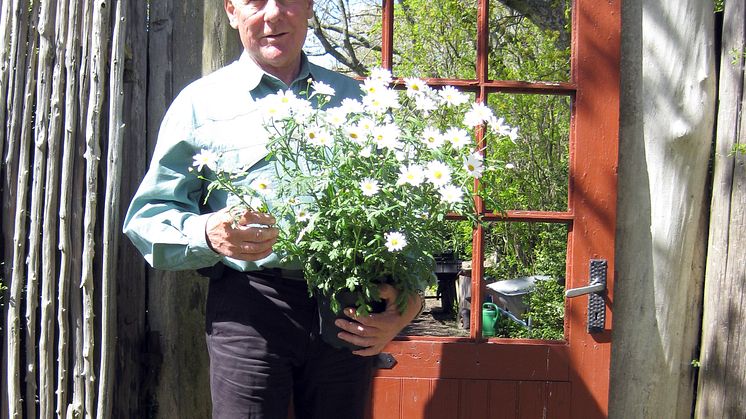 - Glädjen att få förvalta detta kungliga slott med dess arv under så många år har varit fantastiskt. Att under den tidiga våren plocka fram Sofieromargeriten ur dess vinterdvala då den är utsvulten, mager och torr väcker sköna känslor inombords. Vi förvarade under alla vintrar Sofieromargeriten svalt runt 8 grader med tillgång till måttligt ljus. På våren klippte vi ner plantan till tio cm ovan krukans kant. Därefter planterade vi omsorgsfullt om med ny jord och placerade dem i 20-gradig värme och med riklig tillgång på ljus. Snabbt börjar de nya fräscha skotten växa fram. Sofieromargeriten är oerhört snabbväxande, innan vi planterar ut dem i slottsträdgården hinner vi toppa alla skotten tre gånger. Då får vi en kompakt, välförgrenad planta med riklig tillgång på blommor. Här på Sofiero planterar vi ut Margeriterna i slutet i maj men eftersom de tål temperaturer ned till 1 plusgrad hör Sofieromargeriten till de växter man brukar kunna plantera utomhus tidigt i maj.