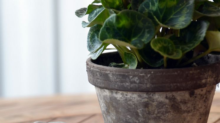 En rosa Krukväxt från Mäster Grön blir ett bidrag till Cancerfondens Rosa Bandet-kampanj