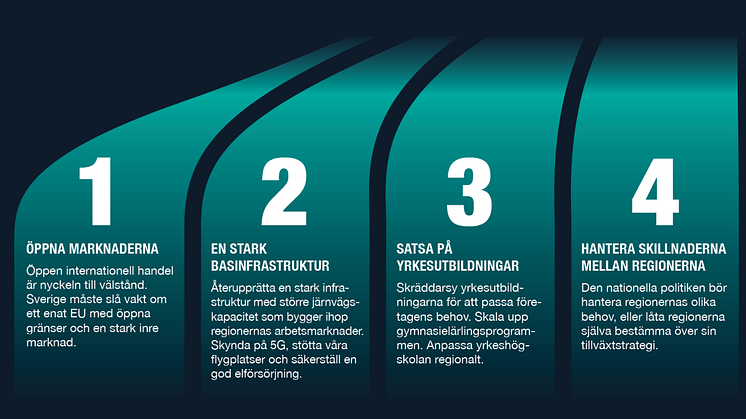 Vi har identifierat fyra punkter som vi tror att politiken behöver prioritera för att lyfta Sverige ur krisen.
