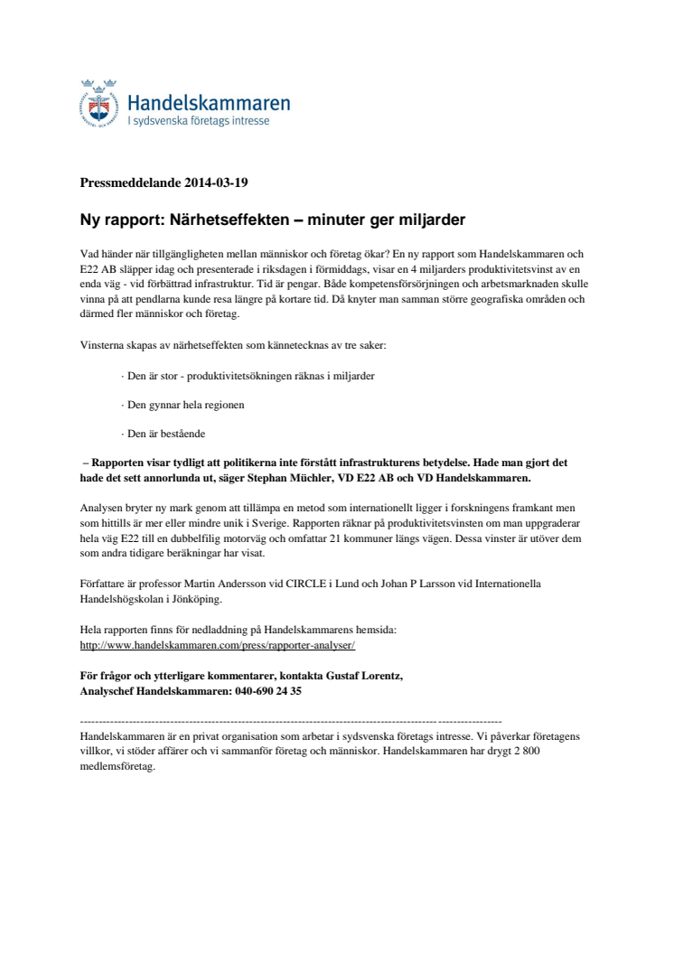 För mer information kontakta Handelskammarens analyschef Gustaf Lorentz; 040-690 24 35