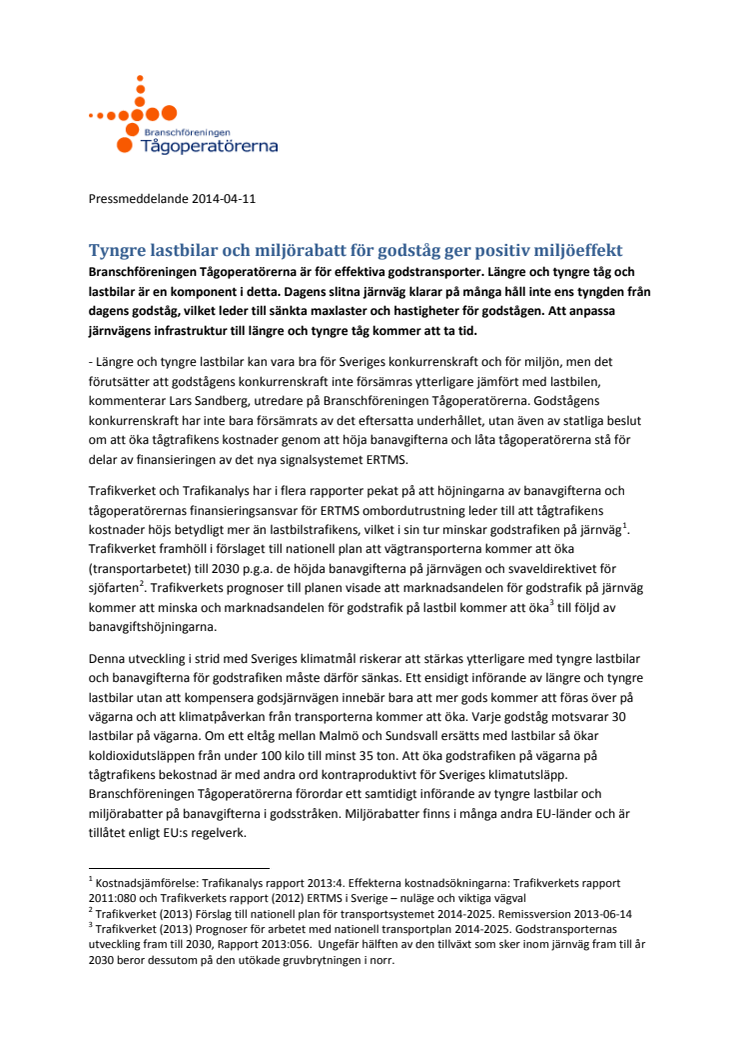 Tågoperatörerna vill ha effektiva godstransporter. Längre och tyngre tåg och lastbilar är en komponent i detta. Dagens slitna järnväg klarar på många håll inte ens tyngden från dagens godståg, vilket leder till sänkta maxlaster och hastigheter för godstågen. Att anpassa järnvägens infrastruktur till längre och tyngre tåg kommer att ta tid.