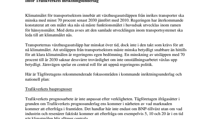 Tågföretagen har gått igenom Trafikverkets kommande inriktningsunderlag och nationell plan och har rekommendationer inom flera områden: