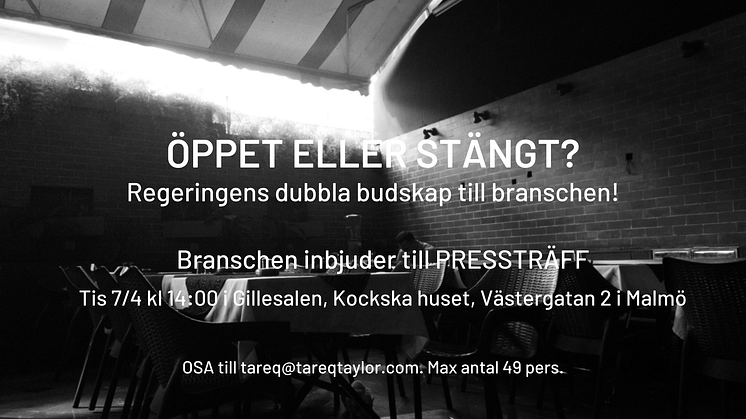 Branschen inbjuder till Pressträff den 7 april kl 14:00 i Gillesalen, Kockska Huset. Västergatan 2, Malmö.