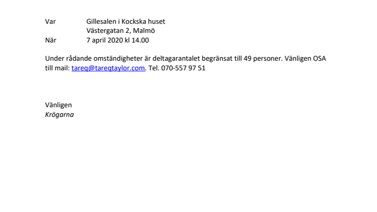 **OBS. Se bifogat komplett dokument med UNDERSKRIFTER och INBJUDAN PRESSTRÄFF 2020.04.07