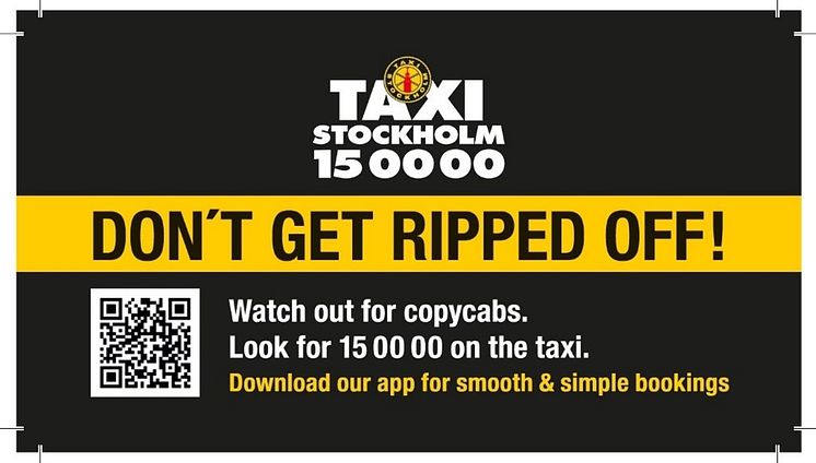 – Vi kan inte helt bli av med problematiken, men vi kan informera våra kunder. Vår kampanj “Don't Get Ripped Off” uppmanar kunder att söka efter numret 15 00 00 i vår logotyp, vilket är en bra riktlinje om man vill sätta sig i en äkta bil från Taxi Stockholm, fortsätter Henrik Boström.