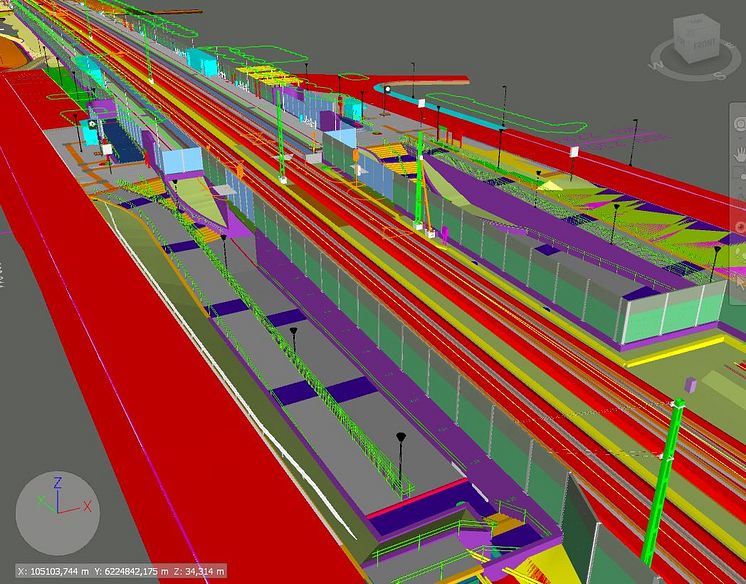 Kattarps station utmed Västkustbanan. Bro och stödmurar längs järnvägen, samt bullerskyddsåtgärder. Modell i Tekla Structures.
