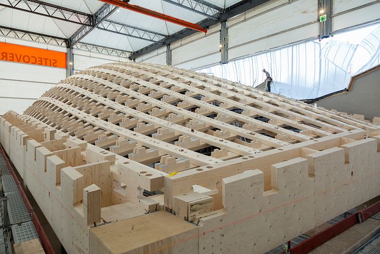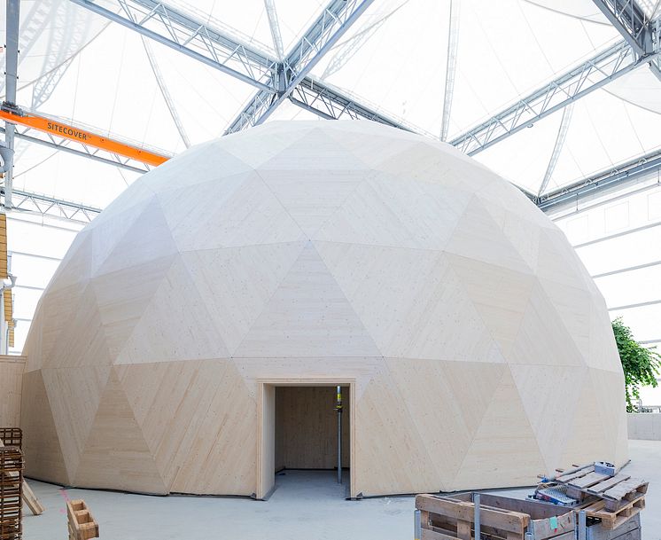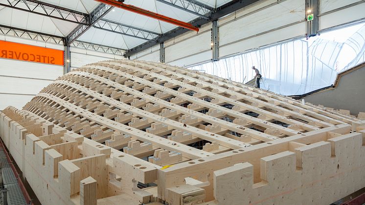 I nationalstadsparken på Kungliga Djurgården i Stockholm byggs Wisdome Stockholm, en spektakulär träbyggnad designad av Elding Oscarson Arkitekter. Den sfäriska kupolen av trä från Stora Enso står nu färdig, och över den växer nu en extremt komplex takkonstruktion fram. Totalt är det 20 kilometer träbalkar i ett böljande rutnät med 10 903 delar som formas och monteras med millimeterprecision – ett arbete av schweiziska Blumer Lehmann som även står bakom några av världens mest häpnadsväckande träbyggnader.