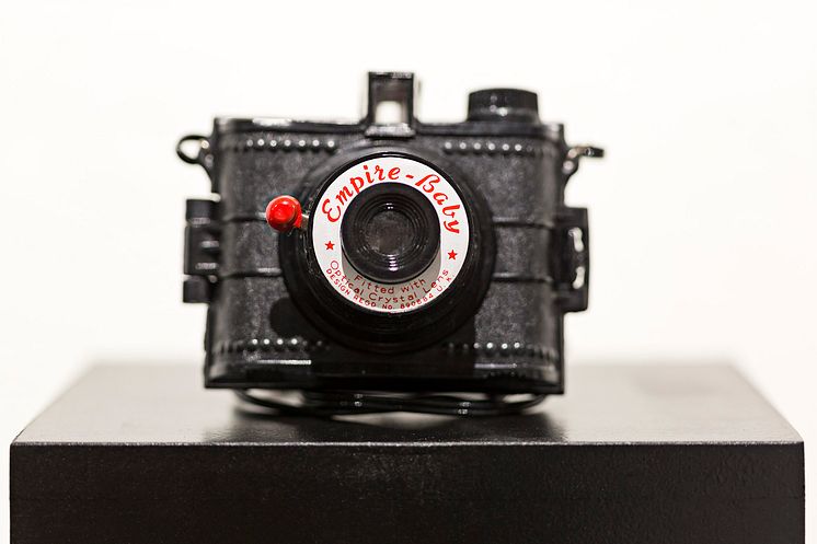 Leksakskameran Empire - Baby skänkt till Tekniska museet av Masoud Emadén som samlat på sig leksakskameror i mer än 30 år under resor och på auktioner.