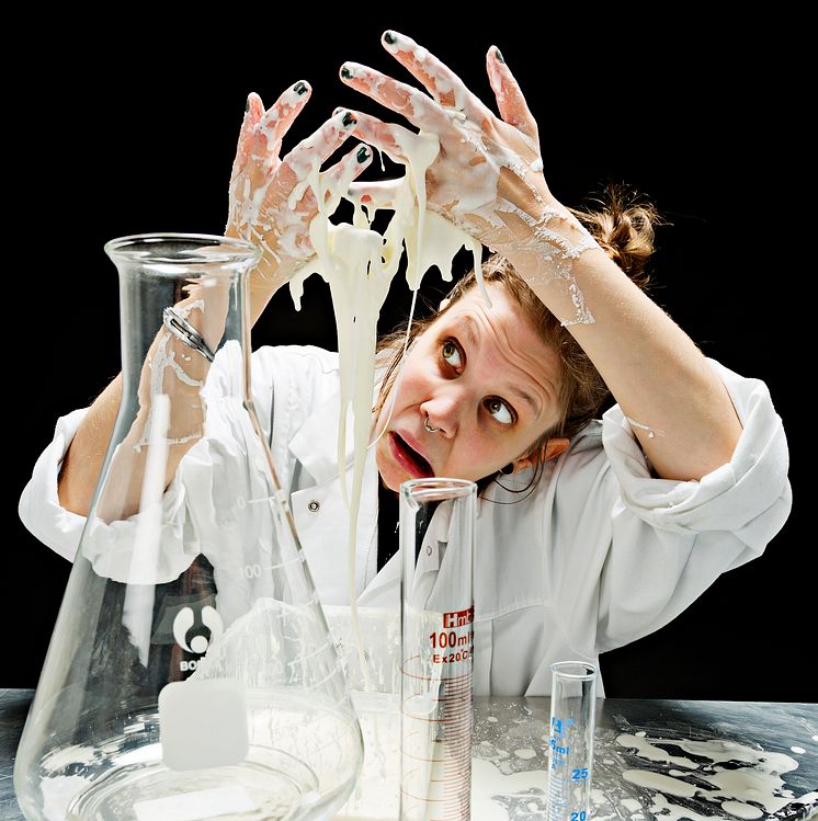 Experimentshow med magiska vätskor som tycks gå emot fysikens lagar, bubbelormar och flygande brustabletter.