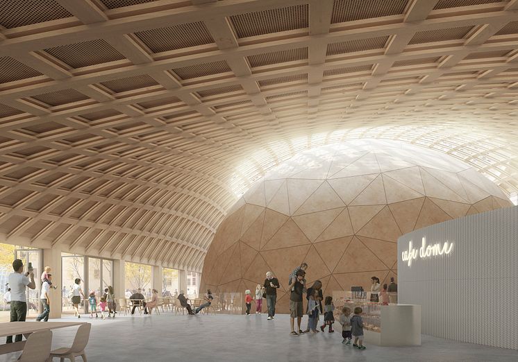 Formkonceptet smälter väl in i kulturmiljön och bygger på en spektakulär, lätt och innovativ takkonstruktion i trä som framhäver den kupolformade domen och gör den till den självklara fokuspunkten. Interiört skapar taket ett iögonfallande rum. Tekniskt och arkitektoniskt visar lösningen på möjligheterna inom träbyggnad och pekar ut en riktning för framtidens hållbara och resurssmarta byggande. Byggnaden är pedagogisk inte bara till sitt innehåll, utan även konstruktionen i sig blir en upplevelse av hållbart och innovativt träbyggande för framtiden.