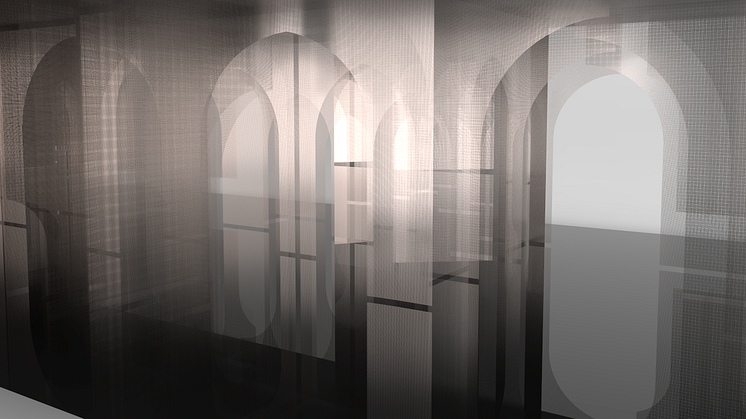Utgångspunkten i den rumsliga upplevelse som Monica Förster Design Studio tar fram är en omslutande artificiell värld, ett tredimensionellt rutnätssystem med inslag av nedbrutna, dekonstruerade arkitektoniska element som valv, fönster och nischer. De strama formerna av människans tekniska skapande får under vägen genom utställningen möta organiska former som kanske mest påminner om naturen, men som egentligen är resultatet av de mänskliga formgivarnas möte med artificiell intelligens.