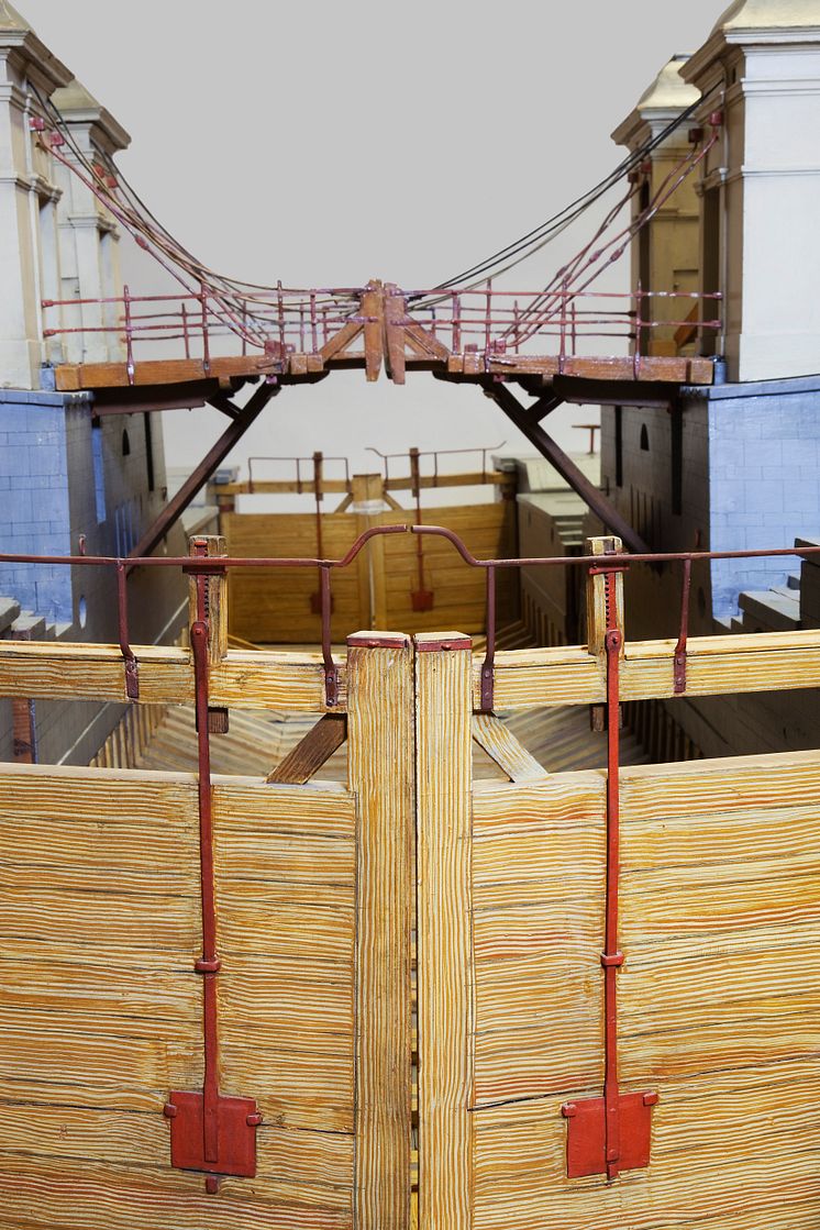 I centrum för Slussen-utställningen står den magnifika 1700-talsmodellen av Polhems sluss. Kring den berättas det om de olika slussar som tagits fram sedan 1600-talet. Besökarna får även möjlighet att ta del av en del av de förslag – både officiella och alternativa – som lett fram till dagens beslutade förslag Den nya Slussen och själva tycka till.