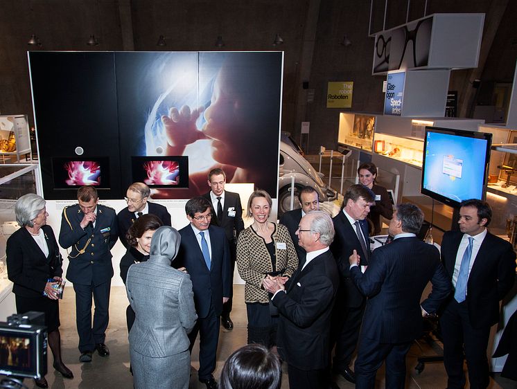Sällskapet guidades sedan genom utställningen 100 innovationer av Tekniska museets personal. Drottningen och presidentens fru Mrs Gül fick en presentation av hur museet arbetar för att väcka intresset för teknik och innovationer bland barn och unga. På plats i utställningen fanns också specialister från Ericsson och ABB, för att berätta om sitt arbete med forskning och utveckling inom innovationsområdet.