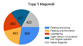 Exempel på klagomål på felaktig prisinformation är att abonnenten menar att: