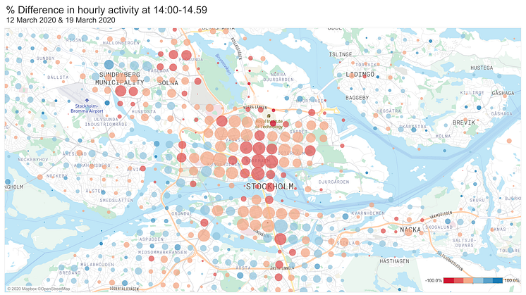 En analys Telia gjort för Folkhälsomyndigheten av hur grupper av människor rörde sig i Stockholmsområdet visar att resandet ökade med 25 procent fredagen den 17 april jämfört med fredagen den 3 april. Störst var förändringen från Stockholm till Haninge (28 procent), Stockholm till Järfälla (27 procent), och Huddinge till Botkyrka (26 procent).