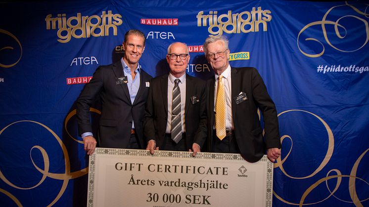 Mats Höglund tilldelas Textilias pris ”Årets Vardagshjälte” på friidrottsgalan