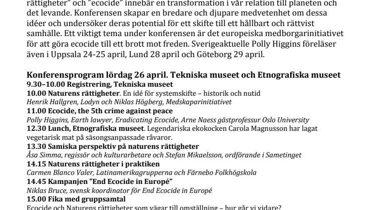Anmälan och mer information: http://endecocide.se/aktiviteter/konferens/