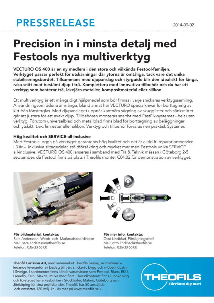 VECTURO OS400 är en ny medlem i den stora och välkända Festool-familjen. Verktyget passar perfekt för utskärningar där ytorna är ömtåliga, tack vare det unika stabiliseringsbordet. Tillsammans med djupanslag och styrguide blir den idealiskt för långa, raka snitt med bestämt djup i trä.