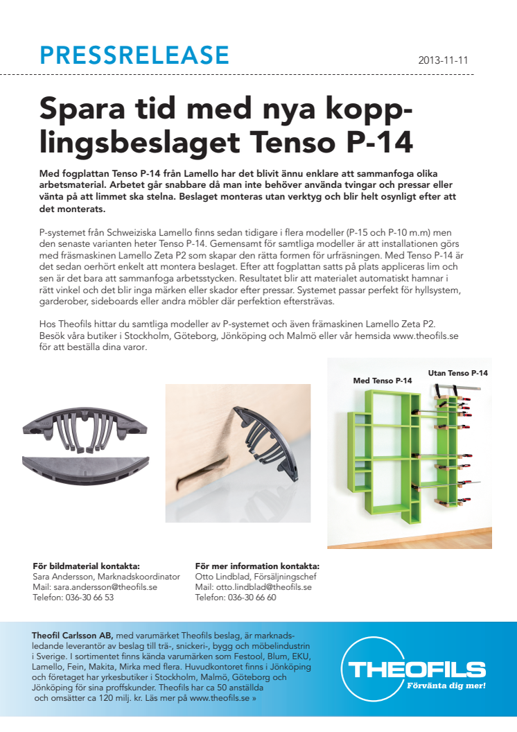 Med fogplattan Tenso P-14 från Lamello har det blivit ännu enklare att sammanfoga olika arbetsmaterial. Arbetet går snabbare då man inte behöver använda tvingar och pressar eller vänta på att limmet ska stelna. Beslaget monteras utan verktyg och blir helt osynligt efter att det monterats.