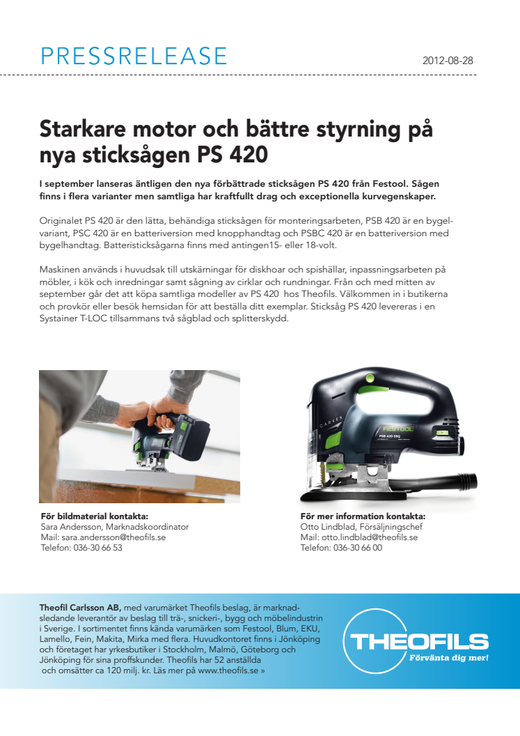 I september lanseras äntligen den nya förbättrade sticksågen PS 420 från Festool. Sågen