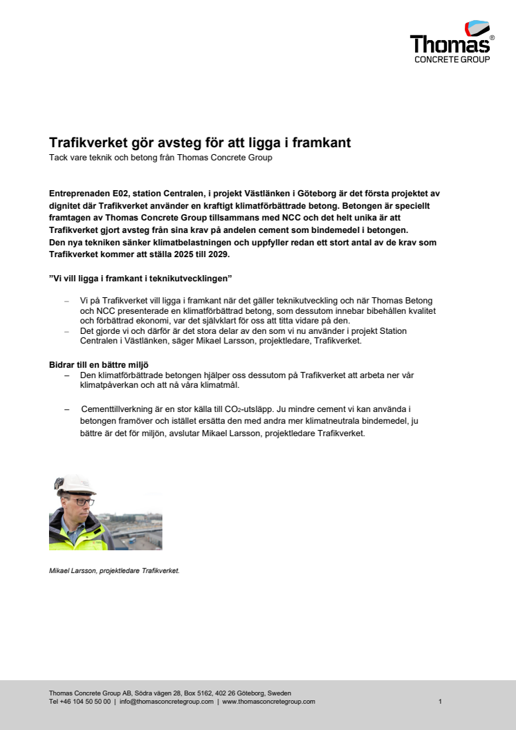 • ​Trafikverket gör avsteg för att ligga i framkant. Tack vare teknik och betong från Thomas Concrete Group