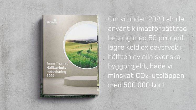–Om vi under 2020 skulle använt klimatförbättrad betong med 50 procent lägre koldioxidavtryck i hälften av alla svenska byggprojekt, hade vi minskat CO2-utsläppen med 500 000 ton. - säger Karin Gäbel, Hållbarhetschef på Thomas Concrete Group.