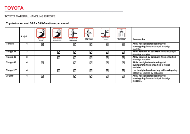 Toyota-truckar med SAS – SAS-funktioner per modell