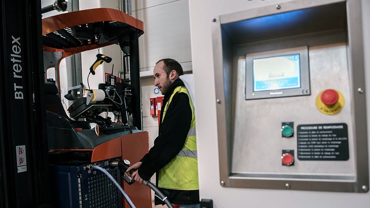 En testflotta med skjutstativtruckar och låglyftare som drivs med bränsleceller är i drift sedan i mars 2015 i Neuville Aux Bois.