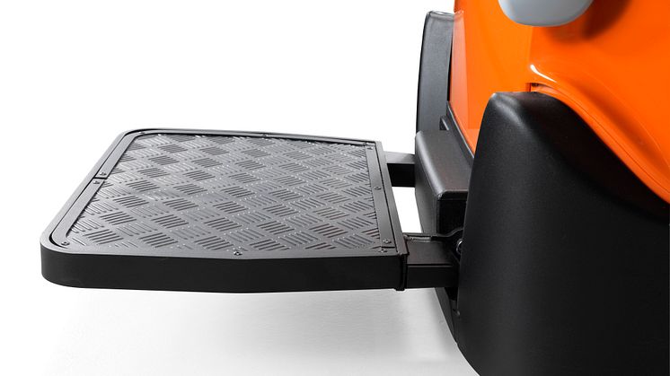 Trucken kommer med en fjädrande ståplattform och kan väljas med eller utan grindar som förarskydd. Servostyrning finns som tillval.